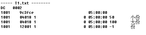 1:类型码(4位)、空位(1位)、点菜机机号(4位)、标志(2位)
